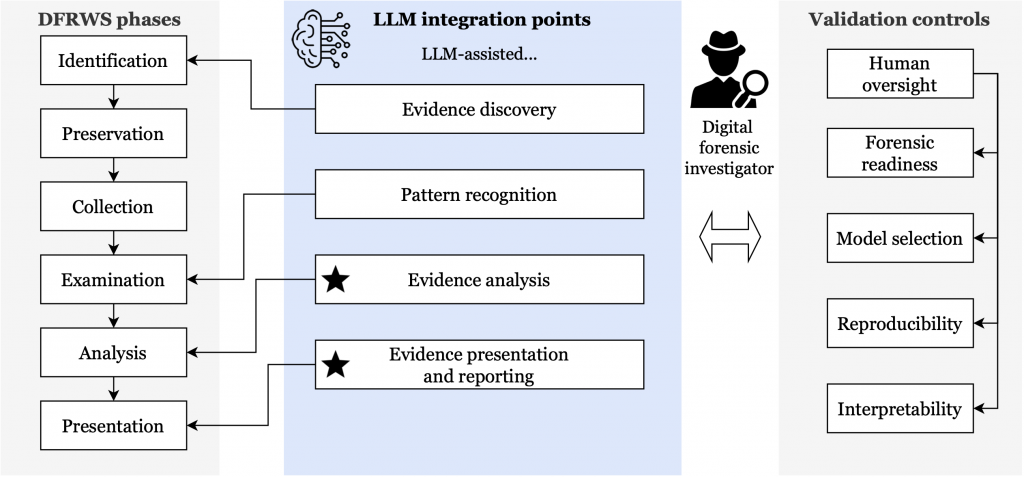 Digital forensics faces mounting pressure through exponential data growth, increasingly sophisticated attacks, and massive case backlogs. LLM-assisted analysis isn’t about replacing human investigators, and it’s about giving them additional capabilities to process complex unstructured data, identify patterns, and generate reliable structured evidence representations automatically. Our framework bridges emerging AI capabilities with rigorous forensic principles, proposing specific integration points while acknowledging critical limitations around non-determinism and hallucinations inherent to LLMs.